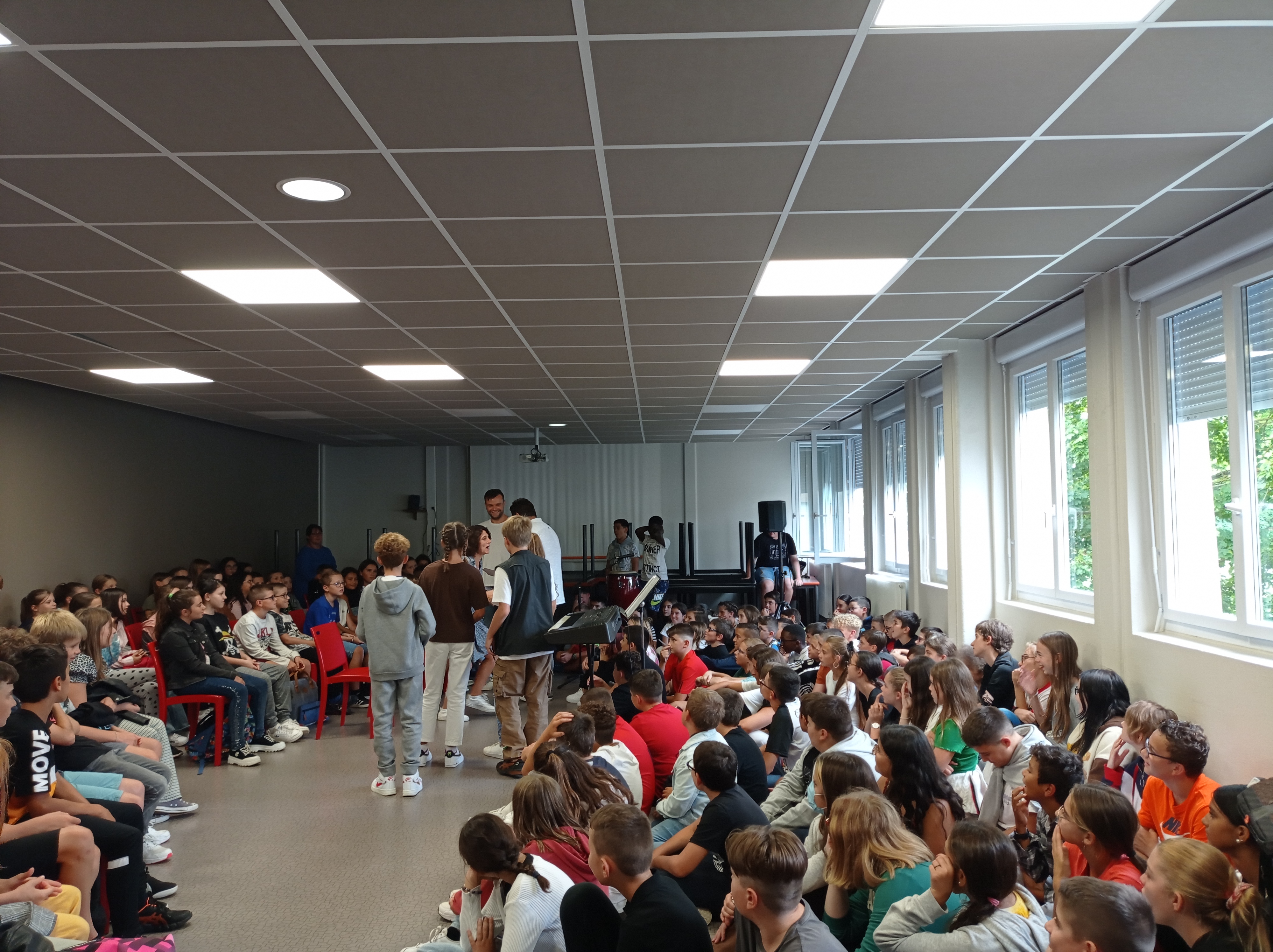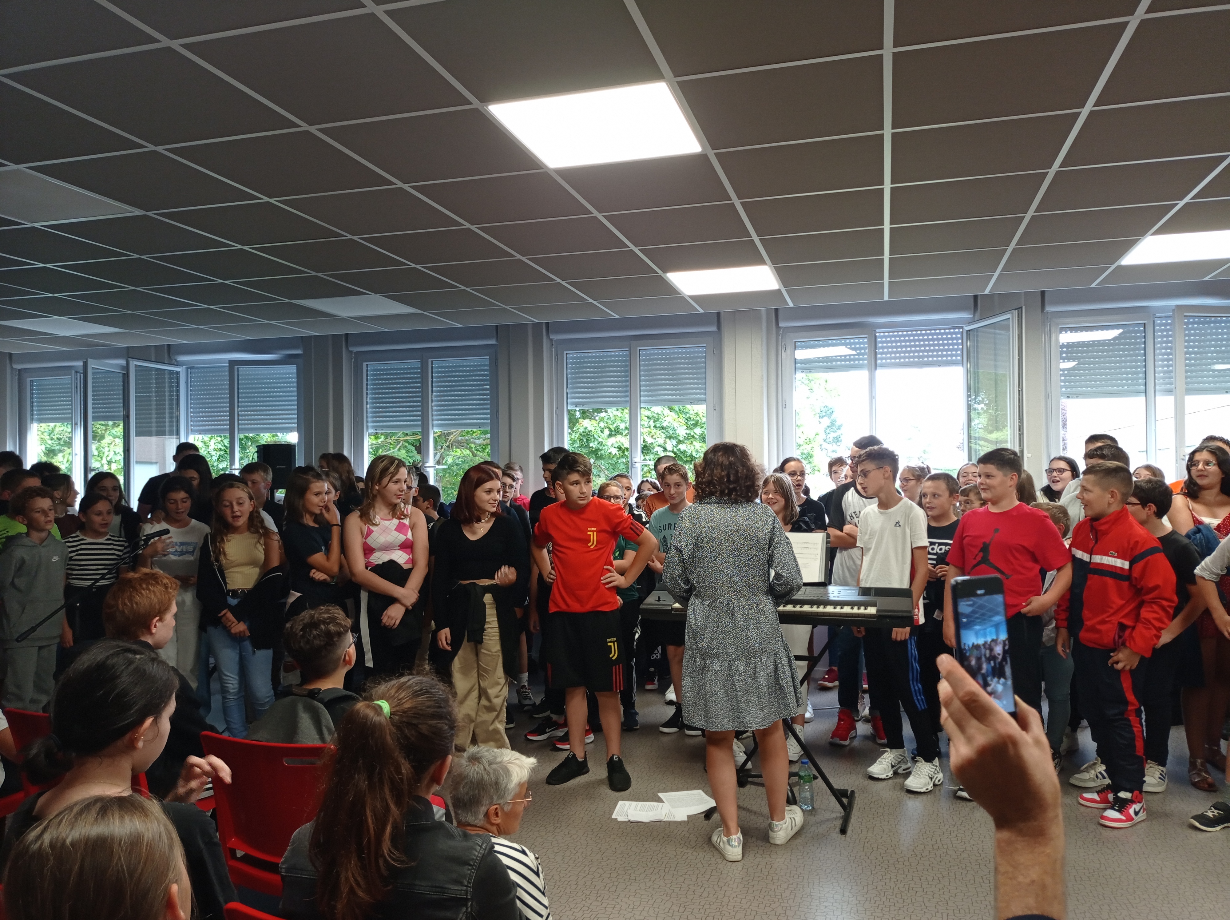 Ce moment de partage s'est achevé, notamment, par une chanson de Bernard Vignal, "A quoi ressemble ta maison", reprise par tous les élèves de 5ème, dont les paroles visaient à rappeler que nous sommes tous différents et que c'est cette différence qui nous enrichit.